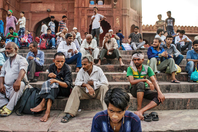 The scene that you see in these pictures is from one of the most famous masjids in India, Jama Masjid, located in New Delhi. Here some people wait outside the masjid in anticipation of namaz. With all their heart, people make their last prayers, Alvida ki namaz, while preparations for iftar take place simultaneously.